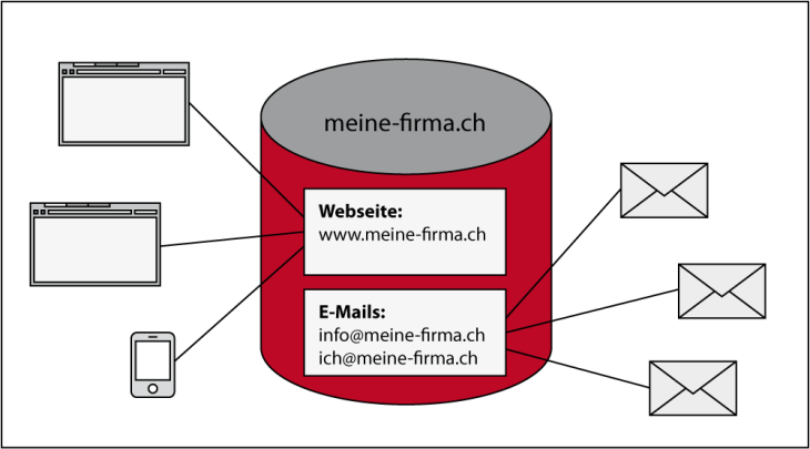 Wenn Sie die Domain „ihre-firma.ch“ haben, können Sie so viele E-Mail Adressen einrichten, wie Ihnen Ihr Internet Provider erlaubt. Beispiele für mögliche E-Mail Adressen sind: info@ihre-firma.ch, verkauf@ihre-firma.ch, hans.muster@ihre-firma.ch. Alle E-Mail Adressen können Sie über Ihren Webserver grundsätzlich selber verwalten.