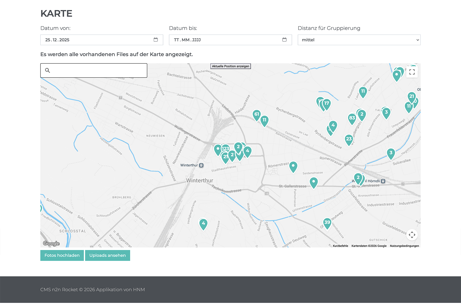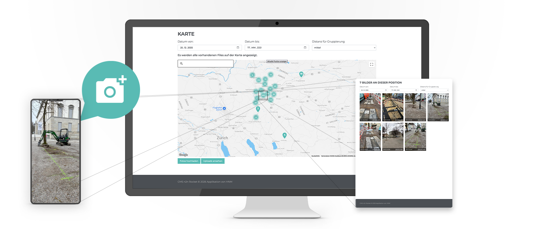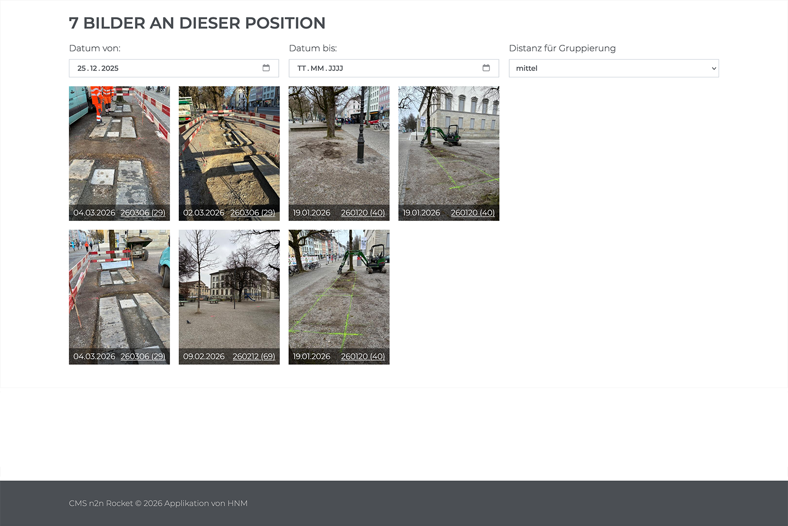 Mit diesem System laden die Projektleiter von Hofmann Gartenbau Bilder ins System hoch. Diese werden nach Ort und Datum abgelegt.