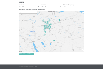 Das System speichert die Bilder dann nach Datum und Ort. Werden Fotos von einem bestimmten Ort gebraucht, können die Bilder auf der Karte einfach gefunden werden. Über einen Filter kann auch das Aufnahmedatum eingegrenzt werden.