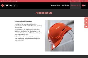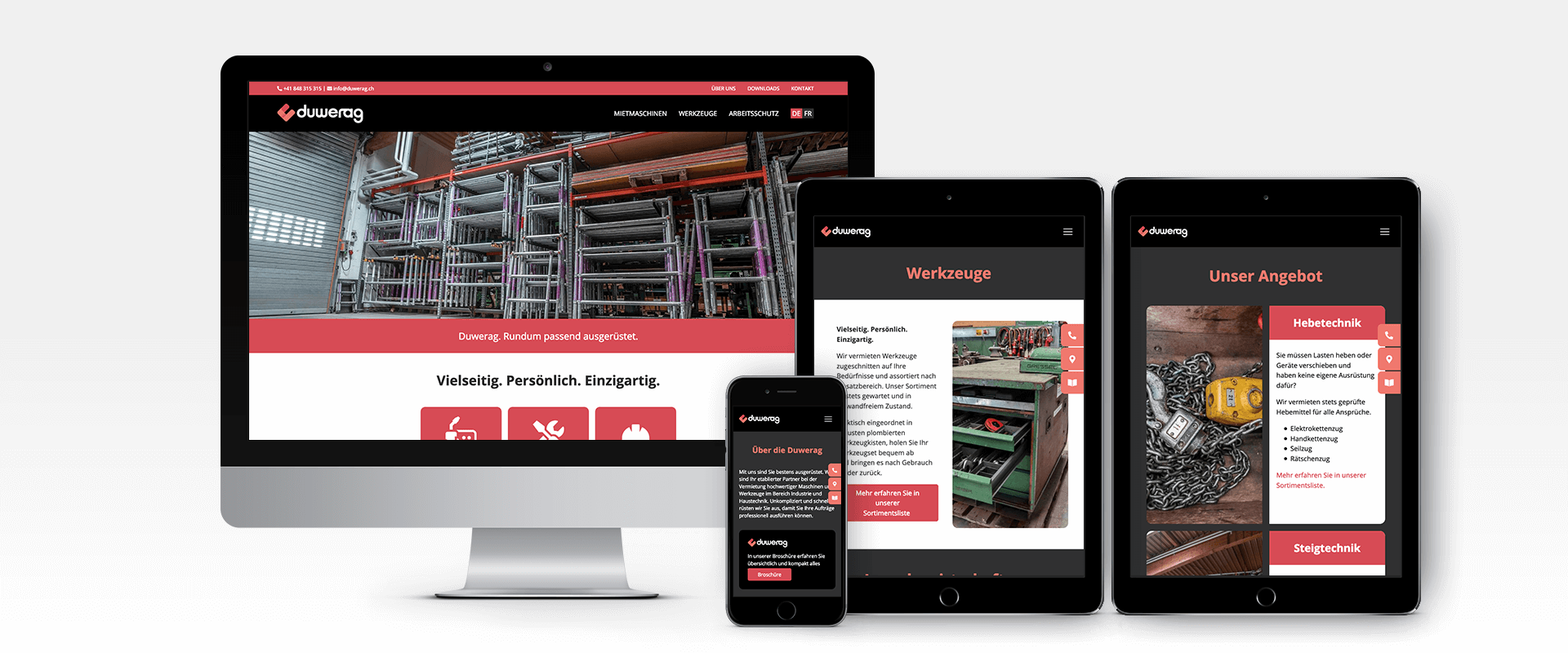 Zur Darstellung der einzelnen Dienstleistungen erhält Duwerag ein flexibles Frontend. Die Adminstration des Website-Inhalts erfolgt mit einem individuellen Backend welches präzise auf die unterschiedlichen Anforderungen des Kunden angepasst ist. Besucher und Interessenten erhalten einen schnellen Einblick in das Produktprotfolio und werden zielgerichtet mit allen relevanten Informationen versorgt. Im Vordergrund steht immer eine schnelle und einfache Interaktion zwischen Unternehmen und Kunden.